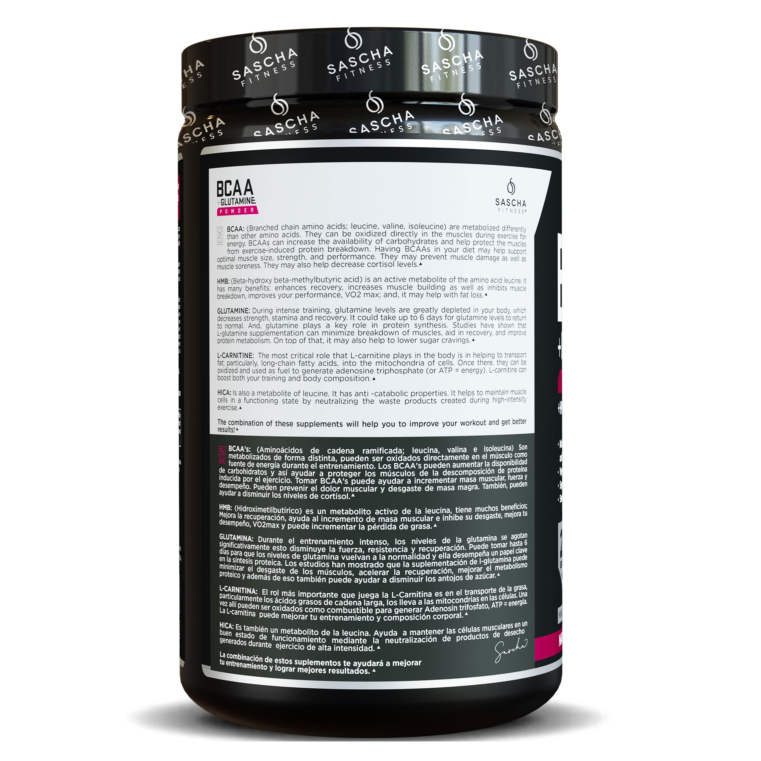 The most critical role that L-carnitine plays in the body is in helping to transport fat, particularly long-chain fatty acids, into the mitochondria of cells. Once there, they can be oxidized, used as fuel, to generate adenosine triphosphate, or ATP= energy. L-carnitine can boost both your training and body composition. If you want to take your training and results to another level this supplement will be your ally. You can take it before, during or after your workouts. Sascha Fitness BCAA's has a sweet but refreshing taste, they are designed to be taken as soon as you prepare it, leaving the product a long time prepared can slightly change its flavor but does not change its quality.