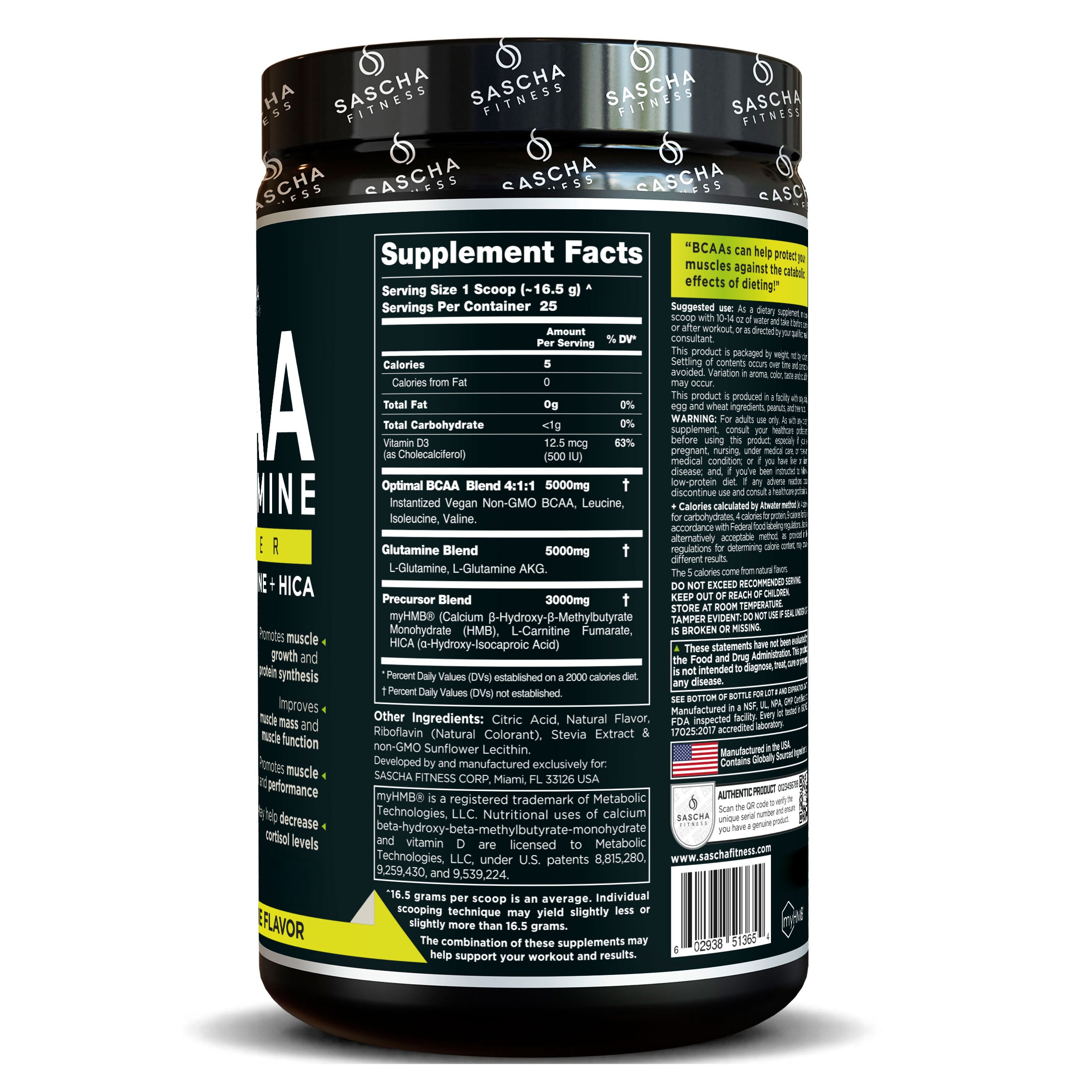 Sascha Fitness BCAA’s is the latest in training supplementation. This unique and powerful amino acid blend enhances performance and recovery like no other. It will also provide you clean, long lasting energy to get you through even the most grueling of workouts, without stimulants and without any jitters or uncomfortable side effects. It can help you improve your body composition, muscle mass and also supports fat loss.