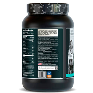 100% isolate and hydrolyzed GRASS-FED protein, your muscles absorbs the protein very fast ,it's the best kind of protein powder if you want to improve body composition. It has 25g Protein per Serving, ideal for protein synthesis and building muscle. Its High in BCAA's and EAAS, they help to protect your muscles , increase muscle mass, resistance and help with your overall hormonal environment. And it has digestive enzymes that improves digestion and prevents gas and bloating.