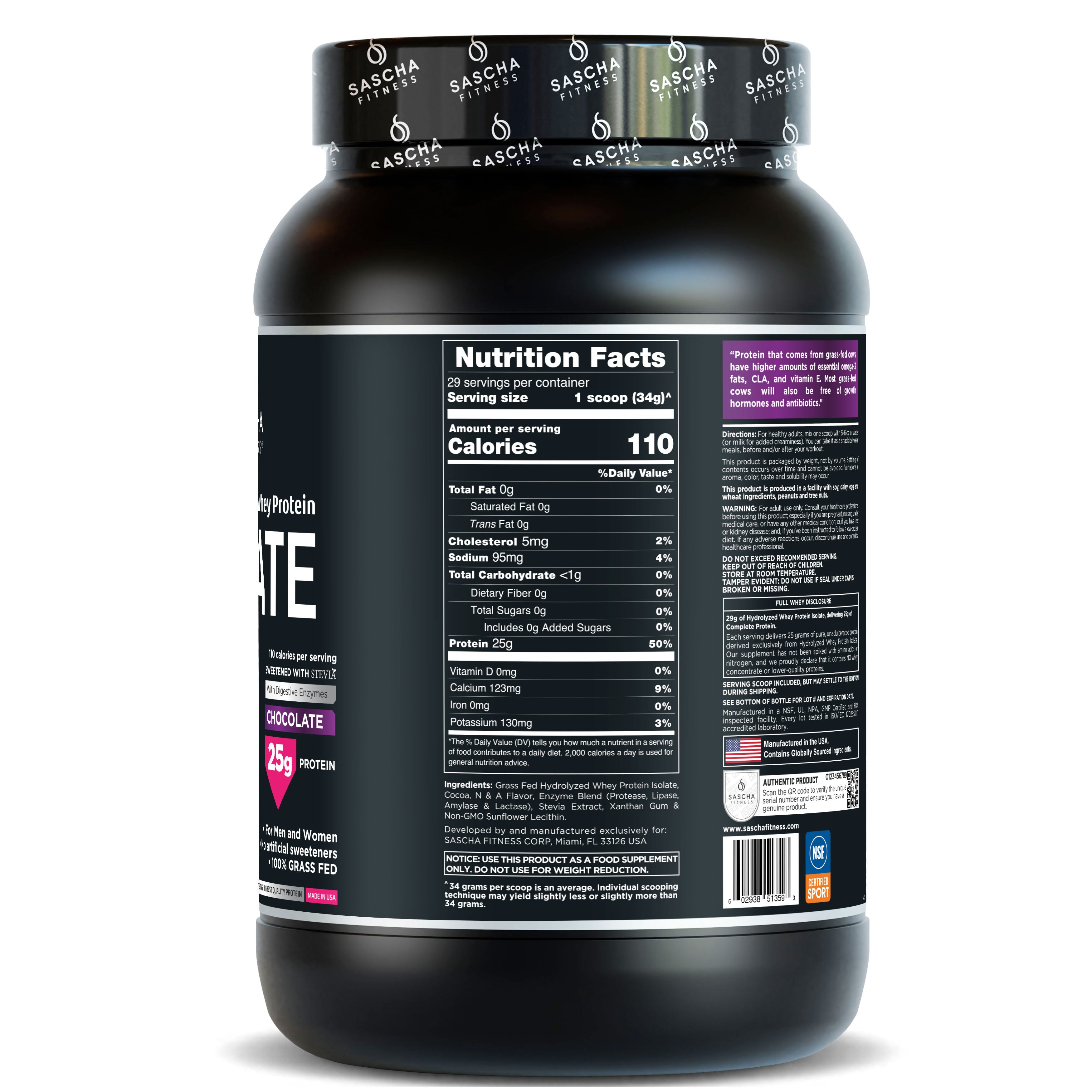 100% isolate and hydrolyzed GRASS-FED protein, your muscles absorbs the protein very fast ,it's the best kind of protein powder if you want to improve body composition. It has 25g Protein per Serving, ideal for protein synthesis and building muscle. Its High in BCAA's and EAAS, they help to protect your muscles , increase muscle mass, resistance and help with your overall hormonal environment. And it has digestive enzymes that improves digestion and prevents gas and bloating.